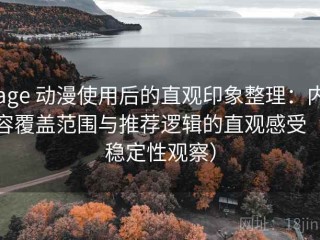 age 动漫使用后的直观印象整理:内容覆盖范围与推荐逻辑的直观感受(稳定性观察)